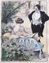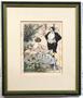 Akvarel a tuš na papíře 29 x 23 cm. Signováno nečitelně vlevo dole. Zelený a černý rám s paspartou a sklem 51,5 x 44,5 cm. V dolní pravé části rám poškozený : odštípnutá hrana. Evropa 1900 - 1930.