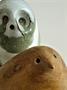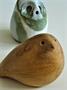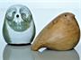 keramická a dřevěná zvířecí figurka sovy a ptáčka, obě jsou signované, výška sovičky cca 10 cm