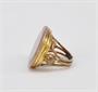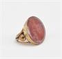 klasicistní prsten s velkým leštěným achátem, v obecném zlaceném kovu zdobeném kuličkami, zdvojená přeštípnutá šína, střední Evropa, kolem roku 1800; velikost prstenu cca 54
