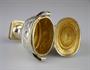 stříbrný klasicistní škapulíř s tajnou schránkou ve spodní části, uvnitř zlaceno, přes ouška se provlékal řetěz, Ag btto 68,85 g/830/1000, švédský punc, kolem roku 1800; atest Puncovního úřadu; výška 10 cm, šířka 5 cm