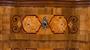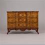 Jedná se o nově zhotovenou komodu původní technologií výroby (vše ruční práce). Komoda je zhotovena ze smrkového masivu, který je dýhován silnou dýhou (4mm). Na komodě je použitá dýha ořechu, javoru, kadlátky, kořenice olše, ořechu a topolu. Kování je lité mosazné. Zámky jsou ručně kované. Vnitřní části zásuvek jsou tapetovány. Povrchová úprava je ruční šelaková politura nanášená polnou. Vyrobeno v našich atelierech. Doprava po celé EU.