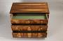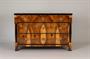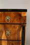 Komoda byla vyrobena okolo roku 1830. Korpus je zhotoven ze smrkového dřeva, který je dýhovaný ořechovou dýhou. Kování není původní a bylo nahrazeno novým mosazným kováním dle originálu. Zámky jsou původní. Povrchová úprava je ruční šelaková politura. Komoda byla komplnětně restaurována.