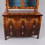 Jedná se o špičkový kus z období raného biedermeieru. Komoda je vyrobena okolo roku 1815 a to ze smrkového korpusu, který je dýhován ořechovou dýhou. Po bocích komody jsou sloupky dýhované do spirály. Přední část komody je prohnuta. Zámky a kování jsou původní,stará litá skla. Povrchová úprava je ruční šelaková politura nanášená polnou. Komoda byla kompletně restaurována.