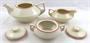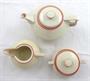 Krémově bílý a červený porcelán. Název modelu : Annabella. Větší konvička s víčkem, cukřenka s víčkem, konvička na mléko s nálevkou. V kubistickém tvaru zdobené červenými linkami. Porcelánka Stará Role, Epiag. Československo 1918 - 1950. Značeno zespodu : zeleně Epiag Czechoslovakia Annabella Modele Depose. Výška konviček 13 cm a 8 cm. Výška cukřenky 8 cm.