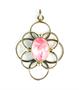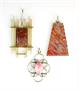 Konvolut tří stříbrných přívěsků různé ryzosti. Přívěsek ze soustředných kruhů je zhotoven ze stříbra ryzosti 800/1000, je osazen rodochrozitem a nese označení Adolfa Regelmanna. Jeho hmotnost je 8,92 g.