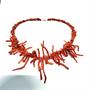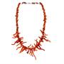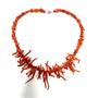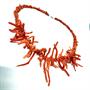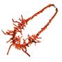Stylový, nevšední korálový náhrdelník z přírodních korálů červeného odstínu. Frontální část zdobí dlouhé korály, druhá polovina náhrdelníku zhotovena z korálů drobnějšího charakteru. Délka 44 cm. Výborný stav.