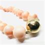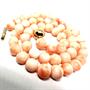 Elegantní náhrdelník z tzv. Andělských korálů. Šperk byl zhotoven z více jak 5ti desítek velkých korálů (průměr 8,4 mm). Každý z korálů je pečlivě prouzlíkován. Šperk je zakončen zlatým zapínáním korespondujícím se šnůrou. Zlato ryzosti 375/1000. Celková váha 38,2 g. Délka 43,5 cm. Perfektní stav.