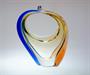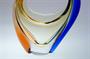 Jedinečný košík ze souboru ROMANA, který se stal symbolem nedávné výstavy o sklárně Mstišov ( 2015 ) "Sklo ze Mstišova známé - neznámé" ( viz posl. foto ). Půvabně barevné a hutně tvarované sklo s ambrovým jádrem a dekorované dvěma nálepy z rosalinového a kobaltového skla. Košík z masivního skla organických tvarů a je návrhem z roku 1960 od sklářské výtvarnice - Hana MACHOVSKÁ ( *1937 ), provedla sklárna Mstišov u Teplic. Dobrý stav, rozměr v. 20 x 16 x 8cm