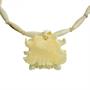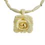 Kostěná šňůra s vyřezávaným přívěskem ve tvaru růže.