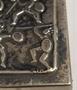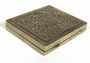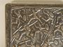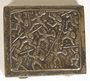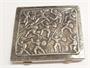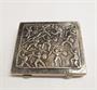 Pouzdro s motivy bojovníků, na vrchu stříbrná plasticky zdobená destička signovaná LIN. Rozměry 7 x 6 cm.