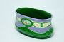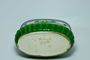 Secesní žardiniera v krásné barevné kombinaci s geometrickým ornamentem a drobným medailonem s květinovým motivem. Glazovaná keramika z počátku minulého století. Na spodní straně značeno vystouplým nápisem a číslem EICHWALD - Dubí ( firma Bernard Bloch ). Dobrý stav bez poškození. Rozměr - š. 18cm, v. 9,5cm, h. 11cm