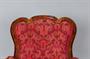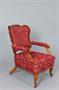 Křeslo bylo vyrobeno okolo roku 1880. Je zhotoveno ze smrkového korpusu, který je dýhován ořechovou dýhou. Křeslo je restaurováno v našem atelieru. Povrchová úprava je ruční šelaková politura. Čalouněno klasickou technologií (pružiny, afr. tráva, koňské žíně).