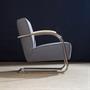Materiál-ohýbaná ocelová trubka chromovaná, dřevěný masiv, nová skladba sezení, nové čalounění,