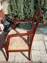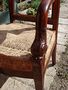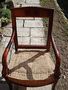 Zrestaurované křesílko před čalouněním ,ořech ,kolem roku 1820,opěrky vyřezávané- delfíni . Rozměry : 94,5 x 60 x 50 cm.