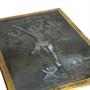 Kovová destička s rytinou Krista na kříži, dole nápis Christ aux Anges, vpravo D´APRES VAN DYCK. Rozměr 18 x 13,5 cm.