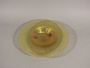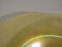 Kruhová mísa na třech nožkách, medové irisované sklo, průměr cca 31 cm, neznačeno. První polovina 20. století. V dobrém stavu.