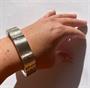 Puncovaný náramek o ryzosti stříbra 800, náramek je v top stavu, min. nenošen. Hmotnost činí 36,5 g, vnitřní průměr 6,5 cm, šíře je 1,9 cm.