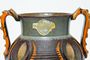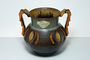 Váza s uchy dekorovaná ornamentem ve stylu kubistického expresionismu, kterým maloval např. Josef ČAPEK. Dochovaná původní nálepka - keramička Georgenthal Německo po roce 1930 ( závod vyráběl i pro BAUHAUS ). Dobrý stav, rozměr v. 15cm, prům. 17cm