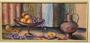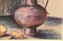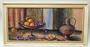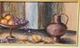Barevné kubizující zátiší s motivem ovoce, mísy a džbánu na pozadí pestré drapérie "Zátiší s pomerančem a vínem", větší formát od malířky - Lenka ČERNÍKOVÁ. Pastel na kartonu z roku 1969, rámováno pod sklem, sign. a dat. p.d. na zadní straně přípis autorky. Obraz v dobrém stavu, na rámu drobné oťuky. Celkový rozměr - 86 x 44cm, rozměr díla - 76 x 34cm