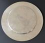 Stříbřený kov. Kulatého tvaru. Vyvýšený, široký, plochý horní okraj. Zdobený dvěma pásy s gravírovanými linkami. Spodní část hladká. Značený zespodu - B. P. ( Britannia Plate ) , značkou výrobce. William Hutton & Sons. , Sheffield & London. Anglie 1900 - 1930. Výška 2 cm, průměr 30 cm.
