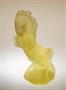 Skleněná plastika z masivního matovaného lisovaného citrínového skla "Kůň ve skoku". Dynamicky působící skleněná soška jejímž autorem je italsko-rakouský sochař Mario PETRUCCI ( *1893 +1972 ), provedla Jizerskohorská umělecká krystalerie Curt SCHLEVOGT do kolekce luxusního skla INGRID po roce 1936. Dobrý stav, rozměr v. 25 x 14 x 11cm, hmot. 2kg