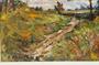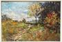 Expresivně pojatá krajinomalba zachycuje polní cestu podél remízku u které je rozkvetlý ovocný strom. Pastózní olej na dřevěné desce z roku 1957, motiv v pestré paletě barev od malíře - František PAVLÍK, školený autor aktivní kolem poloviny minulého století. Obraz i původní rám v dobrém stavu. Celkový rozměr je - 62 x 47cm a rozměr díla 49 x 34cm