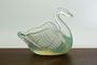 Figurální miska opálového lisovaného skla - styl Art deco ve tvaru labutě. Opálové sklo přechází v čiré a tvoří optické efekty podle typu nasvícení. Pravděpodobně provedla francouzská sklárna Sabino po roce 1910. Rozměr 11 x 11 x 8cm