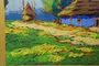 Barevné krajinářské zákoutí z cest po Podkarpatské Rusi a Slovensku - modrá chaloupka s vysokou slaměnou střechou. Pastel na kartonu signováno a dat. 1930 l.d. Autor Ladislav DOBRÝ ( *1901 +1978 ) Rámováno pod sklem v dobrém stavu, okamžitě k vystavení, rozměr rámu - 46 x 39cm, rozměr díla - 29 x 22cm