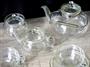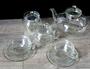 Souprava z tenkého skla, každý kus ( mimo dvou malých talířků) značena PALEX DP. Bezvadný stav, viz foto.