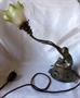 Lampa se sedící nahou ženou vzpínající pravou ruku za zeleným květem lampy je v secesním stylu. Lampa je z kompozice v barvě patinovaného bronzu. Lampa může být použita jako stolní. V tom případě půjde list s květem na stranu. Nebo může být zavěšená na zeď a to buď květem nahoru nebo dolů, podle potřeby. Skleněný širm, který vypadá jako velký zelený květ je původní, nepoškozený, lampa je funkční. Výška lampy od podložky včetně květu je 40 cm, šířka je také 40 cm.