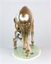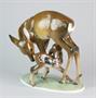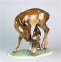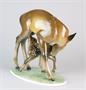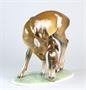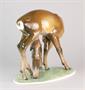 Porcelánová plastika laň s kolouchem, model číslo 1638, roku 1937 navrhl modelér Rudolph Rempel pro porcelánku Rosenthal, rozměr 15,5 x 15 x 9 cm.