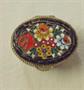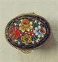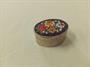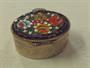 Lékovka vyrobena z obecného kovu, víko zdobeno mozaikovým sklem . Rozměry 3,5 x 2, 8 cm . Výška 1,8 cm.
