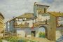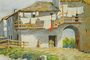 Letní motiv s typickou venkovskou architekturou jižních krajin s drobnou figurální stafáží ženy v šatech. Příjemnou a uvolněnou atmosféru letního dne umocňuje schnoucí prádlo a květiny na balkonech. Práce malíře LEJSEK ( pravděpodobně Vlastimil LEJSEK *1927 Brno ) olejomalba na plátně fixovaná na karton, sign. a dat. l.d. rámováno v dobrém stavu. Rozměr rámu - 76 x 55cm, rozměr díla - 66 x 45cm