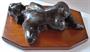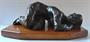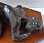 Patinovaný bronz, dřevo. Socha ležící nahé dívky s pokrčenýma nohama, jednou rukou položenou pod hlavou. Nízký, plochý, dřevěný podstavec, oktogonálního tvaru. Signováno na noze sochy - Komárek. Čechy 1940 - 1950. Výška 17 cm, šířka 40 cm, hloubka 27,5 cm.