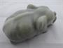 Barevná a glazovaná keramika. Soška mláděte slona se zdvihnutým chobotem. Značená zespodu : vtlačená písmena H, O, B v kruhu. Západočeské továrny kaolinové a šamotové pobočný závod Horní Bříza., Československo 1931 - 1950. Výška 9 cm, šířka 19 cm.
