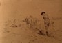 L. Procházková - Scheithauerová (*1884), Vybírání brambor - kresba tuší, rozměr 20 X 28 cm, signováno na zadní straně. Krásná raná práce ještě za svobodna z moravského Slovácka od významné malířky a členky umělecké skupiny Osma. Manželka Antonína Procházky.