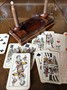 Karty jsou tarokové, ručně kolorované, kompletní 54 kusů kolem roku 1890 z Vídně. Reverz karet je turecký půlměsíc.
