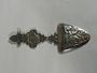 Lopatka stříbrná, zdobená platickým motivem krajiny, krávy a ženy, zdobná rukojeť zakončená mlýnem. Délka 11 cm. Stříbro 800/1000, hmotnost 23,3 g. Počátek 20. století. Osvědčení puncovního úřadu.