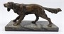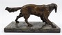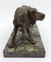 Patinovaný bronz, mramor. Nesignováno. Socha slídícího ohaře z patinovaného bronzu na mramorovém podstavci. Čechy 1900 - 1940. Výška 14 cm, šířka 29 cm. Rozměr podstavce 11 cm x 26 cm.