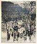 Barevný lept na papíře o velikosti 46,5/39,5 ve štočku, 62/51 cm celkem, včetně rámu. Ajdustováno pod sklem. Signováno autorsky pod motivem uprostřed, v pravém dolním rohu datace “October 1922”.