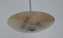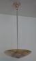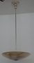 osvětlením.Stropnice skleněná z irizovaného skla,spojená rovnou tyčí s tělem lustru a svítidly.Stínidlo vyklenuté kulaté,talířovité z hnědavého irizovaného skla.Dole zakončený uprostřed chromovaným