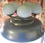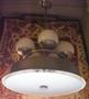 Funkcionalistický lustr má kruhové tělo s originálním plochým skleněným stínítkem. Lustr je z niklovaného obecného kovu a v horní části má 5 koulí z mléčného skla. Ve spodní části pod plochým skleněným kruhovým stínítkem jsou 4 objímky na žárovky. Lustr je ve funkcionalistickém stylu z období 30. let minulého století. Výška je 93 cm, průměr 58 cm. Na horní straně lustru je několik škrábnutí, ale při zavěšení nejsou vidět. Jinak je lustr v pěkném stavu, funkční.