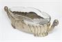 Žardiniéra ve výrazném tvarosloví Art - Deco z krásně tvarované se žebrovaným reliéfem, původně postříbřené alpaky a se skleněnou brusem bohatě zušlechtěnou vložkou. Stylový a velmi dekorativní solitér, výrobcem neznačeno, pravděpodobně ji provedla firma Sandrik ve 30tých letech minulého století. Dobrý stav, rozměr - š. 42 x 16 x 14cm