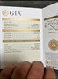 Predám luxusný zásnubný prsteň zo žltého 14K zlata s centrálnym prírodným diamantom s certifikátom GIA. Elegantný halo dizajn – centrálny diamant obklopený menšími diamantmi po celom obvode hlavy aj po ramene prsteňa.
