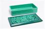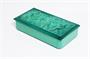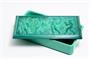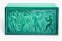 Půvabná dóza ve stylu ART - DECO z malachitového (Jade) skla s víkem na kterém je hluboký reliéf tančících dívek Tři Grácie ( v řecké mytologii dcery nejvyššího boha Dia ). Celoplošně fazetově broušené a leštěné sklo, dóza na odkládání drobných cenností. Provedla Jizerskohorská krystalerie Heinrich HOFFMANN do kolekce luxusního skla INGRID krystalerie Curt SCHLEVOGT v 30-40tých letech (znač. Motýlek na víku vpravo dole). Dobrý stav, rozměr - š. 17 x 9 x 4,5cm
