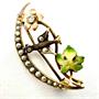 Malebná, velmi stará, drobná brož. Šperk s motivem vlaštovky byl vyroben ze zlata ryzosti 440/1000, o celkové váze 1,90 g. Zdobeno barevnými smalty, říčními perlami a briliantem na středu květiny. Rozměry 3 x 1,4 cm. Velmi jemně, detailně zpracovaný šperk z konce 19.století ve výborném stavu.