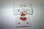 Dekorativní dóza s víkem z masivního fazetově broušeného skla na kterém je symbol Žolíka ( Jocker ) jako alegorie karbanu. Větší luxusní dóza z čirého skla s malovaným abstraktním ornamentem z 30-40tých let. Pravděpodobně provedly sklárny v Jizerských horách. Dobrý stav, rozměr - 15,5 x 11 x 6,5cm