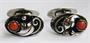 Staré art deco manžetové knoflíčky z 900 stříbra s oranžovým korálem, punc 900 a výrobce (běžící zajíc nebo králík), možná jedna ze stříbrníckých dílen ve Pforzheimu, Německo, druhá třetina 20. století. Rozměr circa 2,0 x 1,2 cm, váha brutto circa 8 g (na dopisní váze), velmi dobrý stav bez poškození, jen mírné známky stáří a používání. (657)