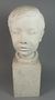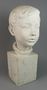 Chlapecká busta ze sádry. Celková výška: 44 cm, rozměry podstavce: 17,5 x 13,7 x 14,2 cm. V zadní části podstavce věnování Míšovi, signováno a datováno na soklu: MZ 54.