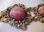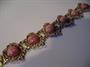 Nádherný článkový náramek osazený kabošony polodrahokamu, je zhotoven ze stříbra o ryzosti 835, jeho celková hmotnost je 65,85 g, délka 20 cm, v nejširší části měří 3,5 cm.